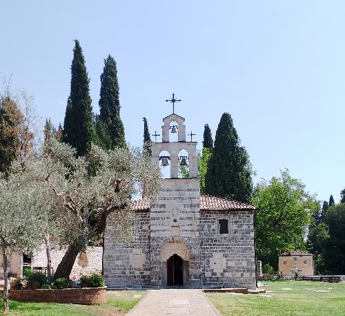 La piccola chiesa di San Giorgio, incastonata ai piedi della collina Gorica, custodisce una storia avvolta nel mistero. E' considerata tra le più antiche e importanti della regione, meta incessante di fedeli, pellegrini e visitatori da ogni parte del mondo. Nessuna fonte scritta ne rivela l’origine, ma la pietra parla: le forme architettoniche rimandano ai monumenti preromanici del X e XI secolo e sorse su un luogo ancora più vetusto, forse romano. Secondo la tradizione fu qui che Stefan Nemanja, fondatore della dinastia dei Nemanjić, ricevette il suo primo battesimo, nella Ribnica medievale (così si chiamava Podgorica), un gesto fondativo che lega la chiesa alle radici della spiritualità serba. Il luogo ameno fu scelto come sepoltura tutto intorno alla chiesa; all'interno mirabili affreschi illustrano la teologia ortodossa, mentre la Theotòkos (la Madre di Dio) risplende teneramente nella parte più recondita e sacra del tempio. Misteriosi segni profondamente incisi su tutto il pavimento del nartece e dell'aula ci hanno sorpreso, anche per la risposta poco verosimile data dal custode...Andiamo a scoprirlo nel nostro video-documento!